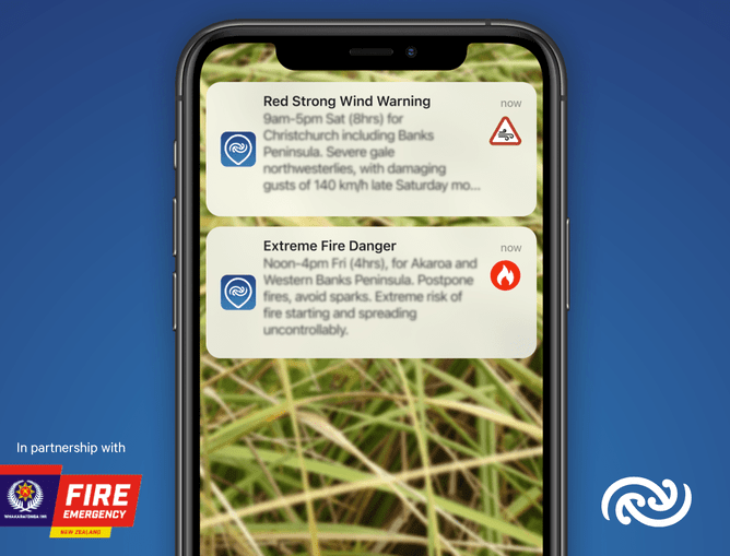 The partnership with Fire and Emergency New Zealand will help Kiwis be aware of and ready for our most extreme conditions. All that is required is to have the free MetService NZ Weather app installed on your mobile phone and the location specific notifications enabled.