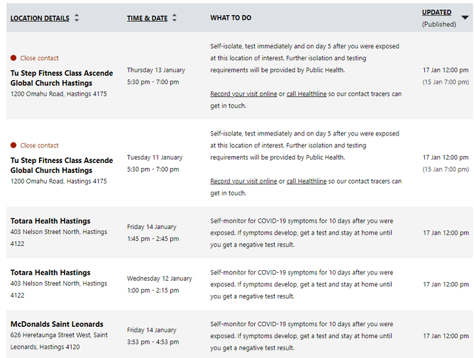 McDonald’s and Totara Health are not classed as “close contact” locations, and anyone who was there during the listed times is asked to self-monitor for COVID symptoms for 10 days.