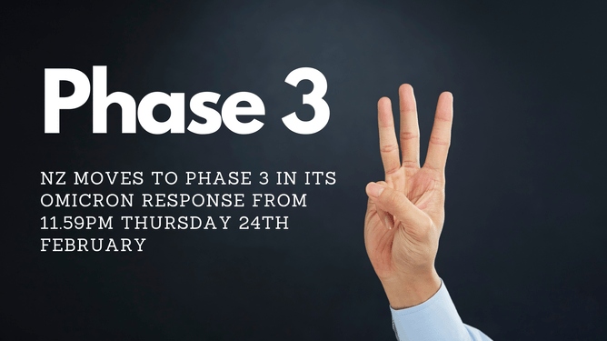As community cases spread across New Zealand the Government will move the country to phase 3 of the Omicron response plan at 11.59pm on Thursday night.