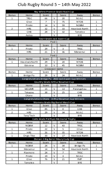 Weekend rugby results :