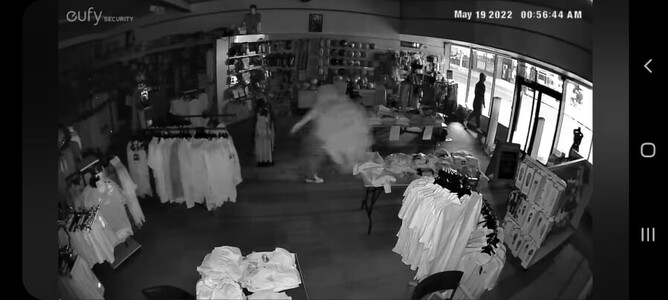 CCTV footage posted on the shops Facebook page showed an offender entering the store just before 1 o’clock this morning and making off with a number of items off a clothing rack.