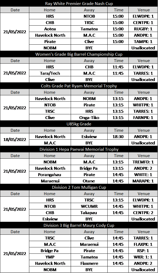 Note : Pirates have defaulted to Porangahau in Division 1.