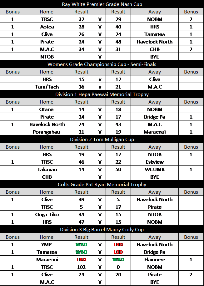 Both teams played Massey University, with Massey Colts winning 31-19, and Massey Seniors winning 33-7.