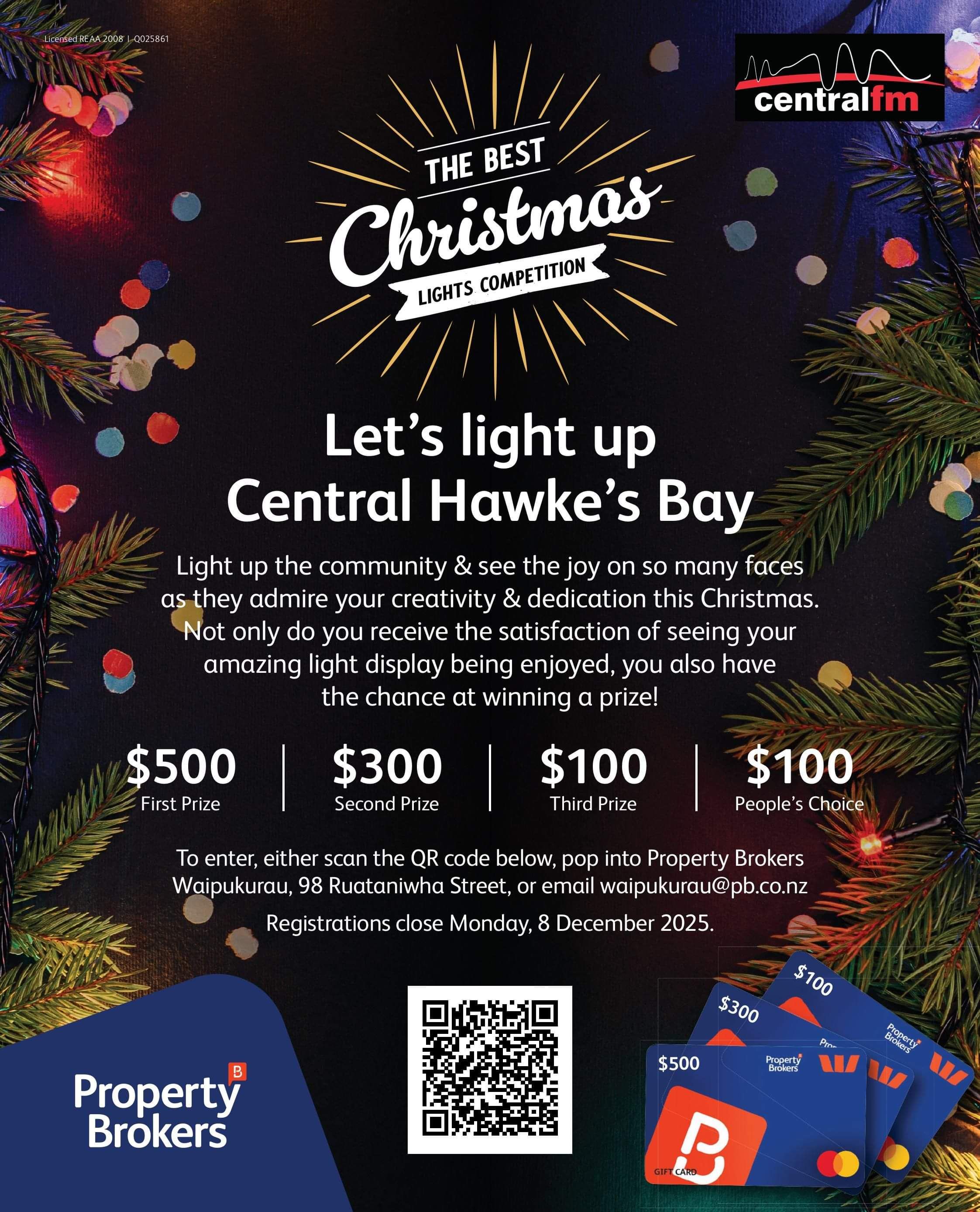 It’s that time of year! Registration is now open for the Property Brokers Best Christmas Lights Competition, proudly brought to you by Central FM and Property Brokers Central Hawke’s Bay.