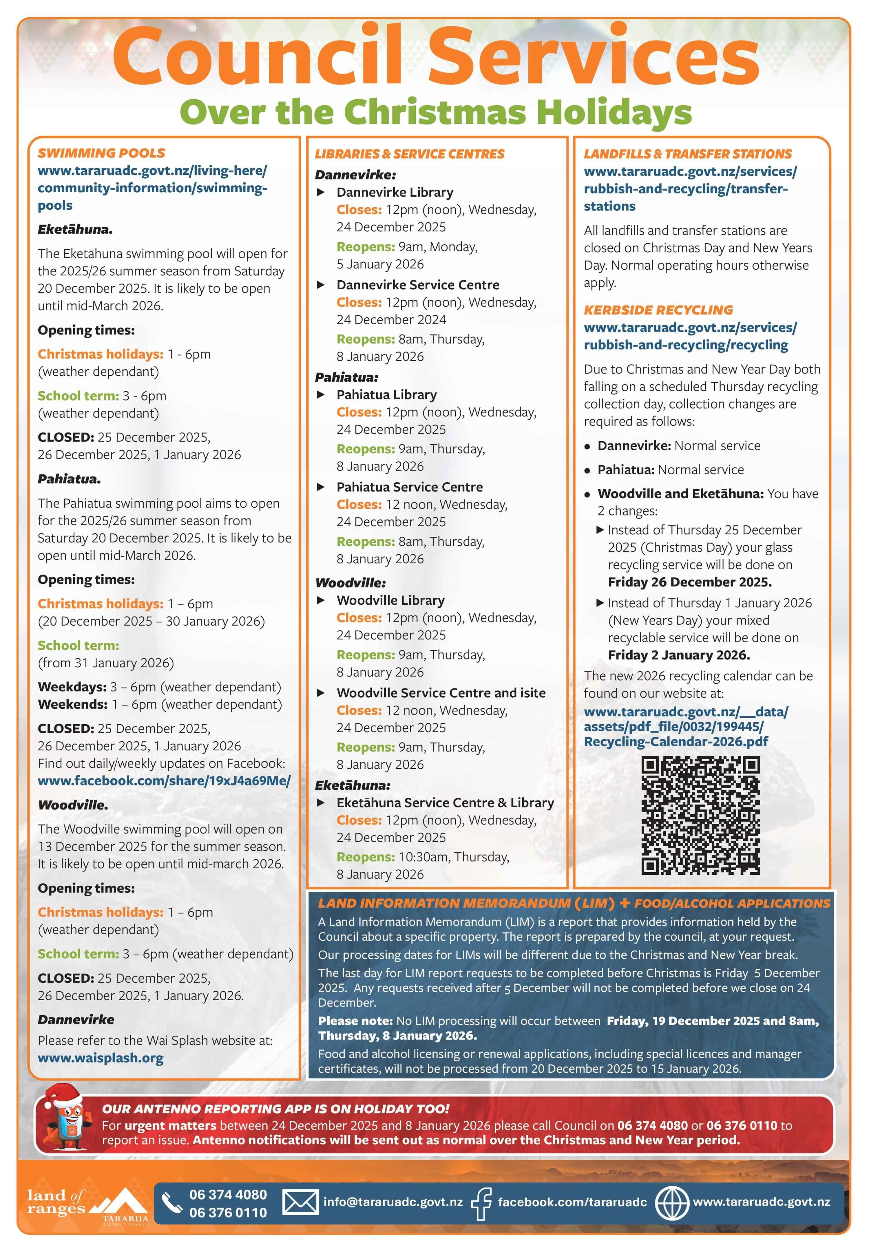 Stay connected with what’s happening in Central Hawke’s Bay and the Tararua District! From community events to important local notices, this is your hub for everything you need to know.